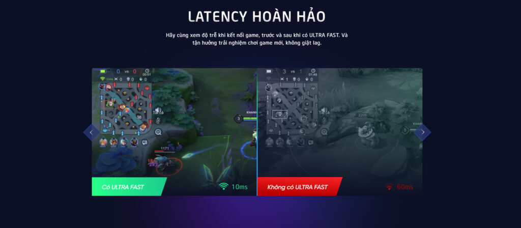 Tính năng đã được tối ưu cho hơn 50 tựa game hấp dẫn nhất và vẫn đang tiếp tục được cập nhật. Với việc ứng dụng công nghệ Big data & AI, tính năng này có thể liên tục tối ưu chất lượng đường truyền đảm bảo một trải nghiệm chơi game mượt mà vượt trội. Không những thế, Ultra Fast có khả năng tương thích các thiết bị gaming như mobile, PC, Playstation, Xbox, Nintendo… do đó hỗ trợ game thủ tối đa mọi lúc mọi nơi mà không còn phải lo về giới hạn sử dụng như các tựa game phổ biến hiện nay.